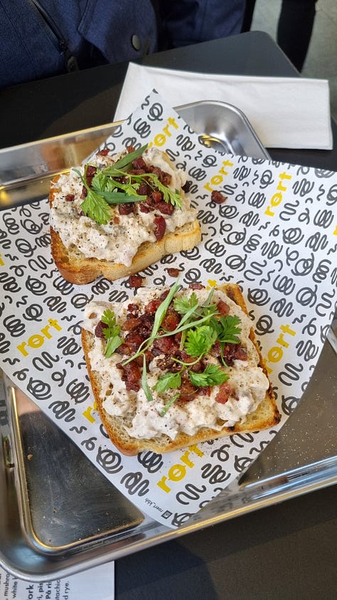 I ate one of the best smørrebrød ever (bread with something on top, super typical). Chicken, bacon, herbs and everything nice.
