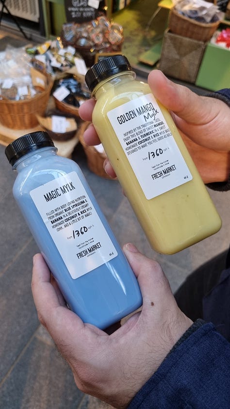 I had a fabulous blue juice - banana, spirulina, coconut milk and rice. And a little magic (it's on the label).